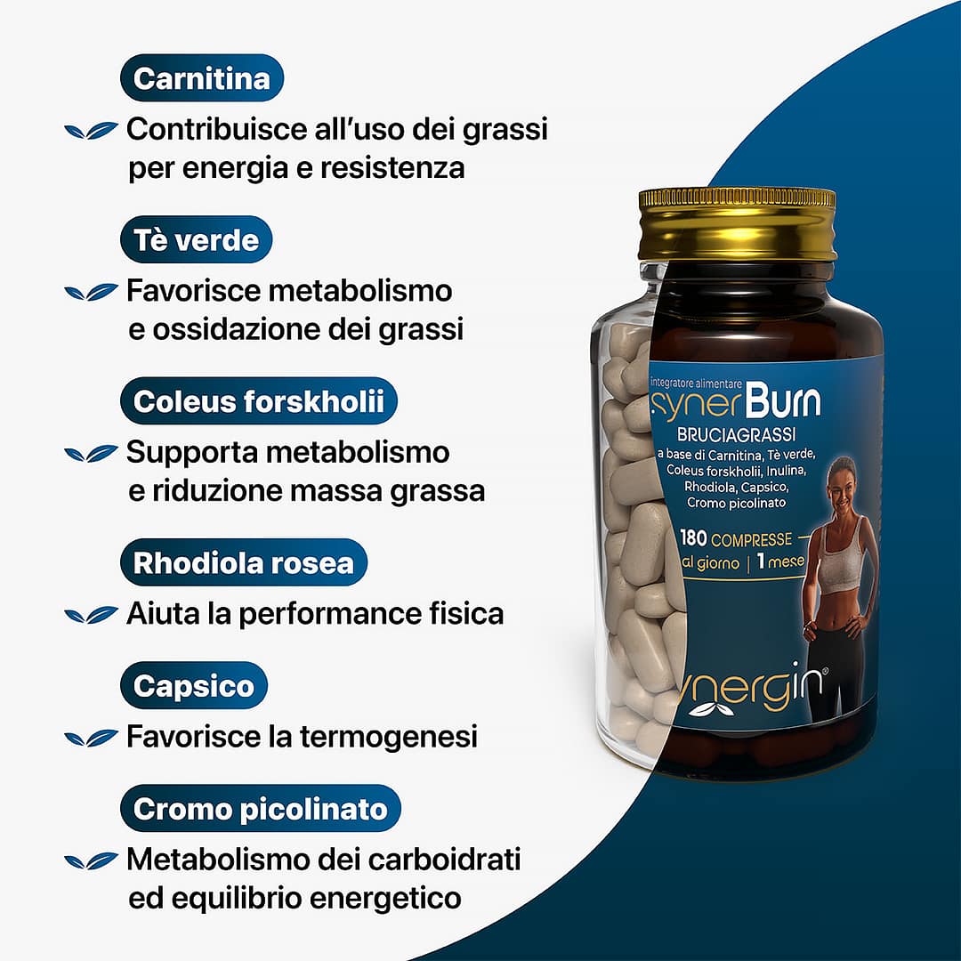 synerBurn Sport - termogenico con carnitina per energia e definizione muscolare negli sportivi.