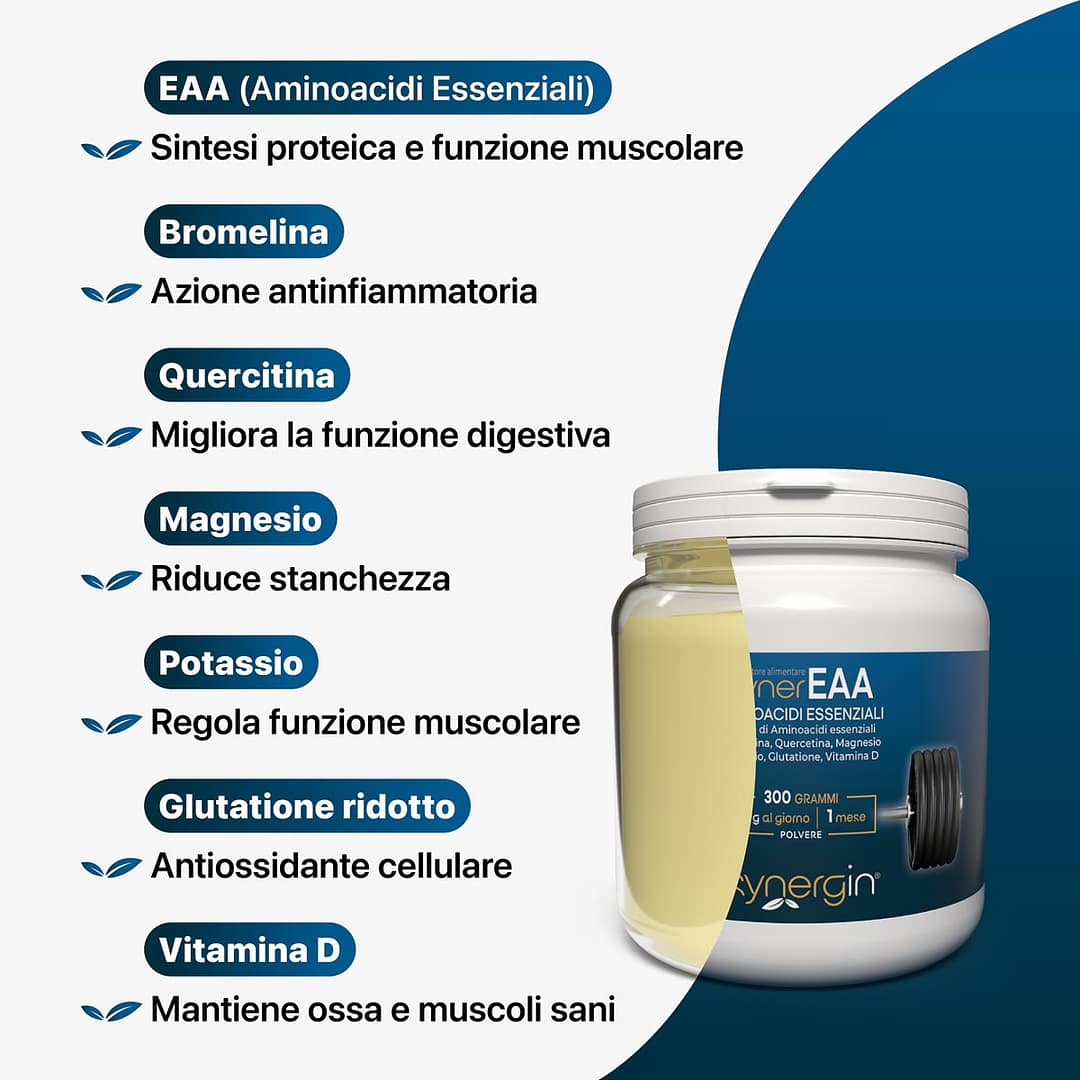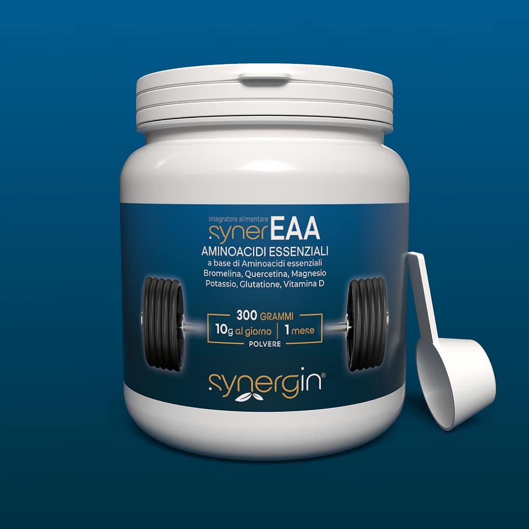 synerEAA Sport - con aminoacidi essenziali per il recupero muscolare post-allenamento.