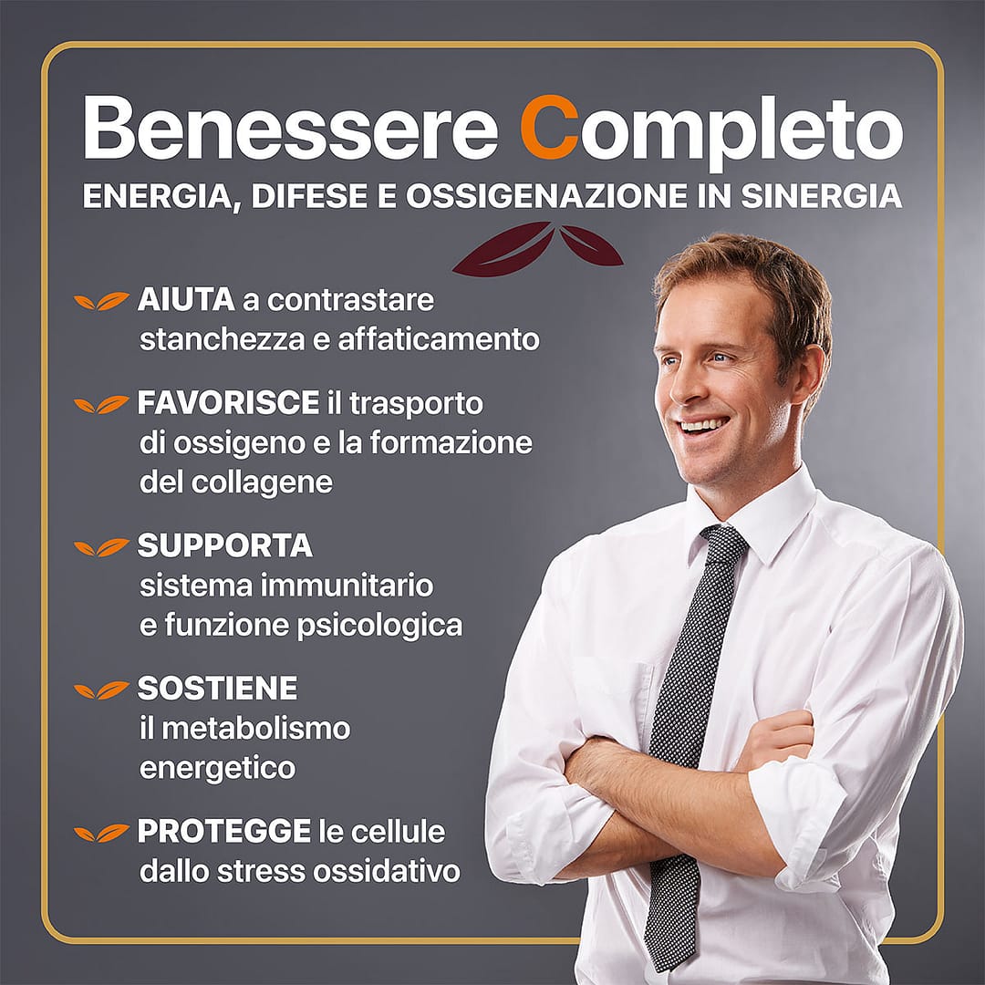 • Riduzione della stanchezza (grazie alla sinergia Ferro-Vitamina C)