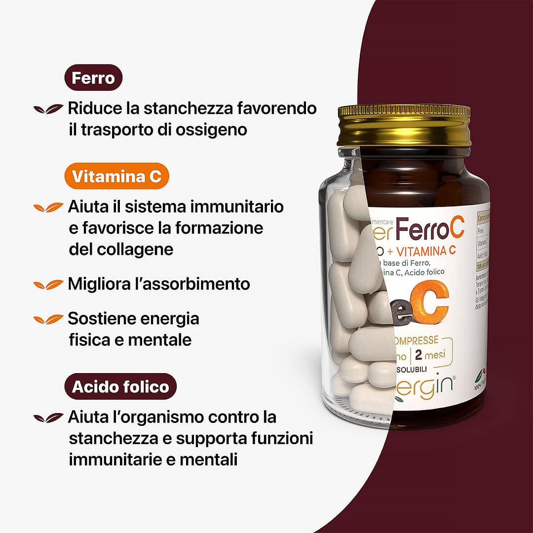 synerFerroC - con ferro, vitamina C e acido folico per contrastare stanchezza e affaticamento.