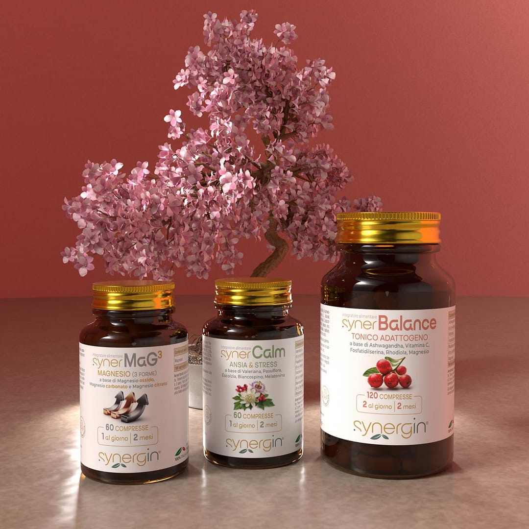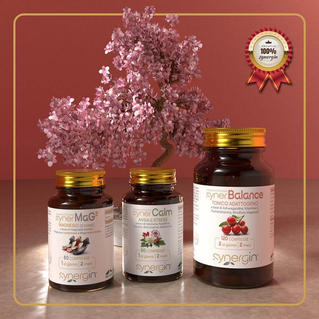 😌 + 🧠 + ⚖️ Il percorso con synerBalance, synerCalm e synerMaG3. Aiuta a modulare la risposta allo stress, favorisce il rilassamento profondo e sostiene il sistema nervoso con magnesio altamente biodisponibile. Ritrova il tuo equilibrio interiore con questo approccio multifattoriale.
