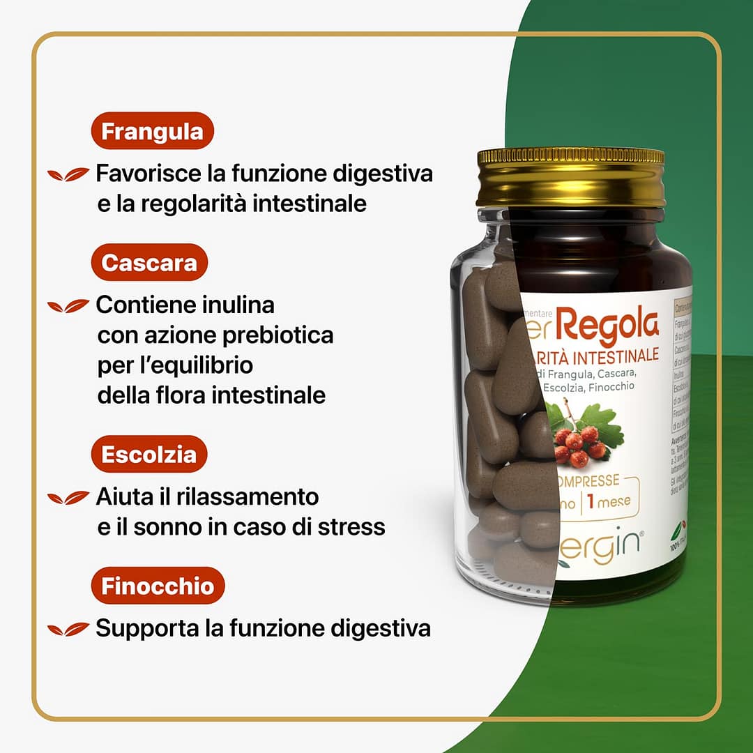 A base di Frangula, Inulina e Finocchio. Favorisce la regolarità del transito intestinale, supporta la funzione digestiva e ha un'azione prebiotica per l'equilibrio della flora.