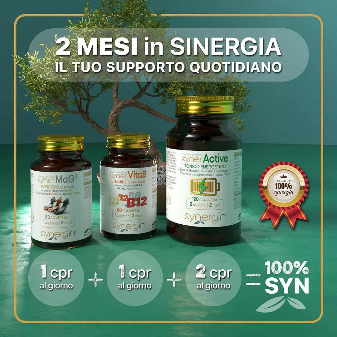 🚀 + 🧠 + 💡 Focus Attivo, il programma sinergico con synerActive, synerMaG3 e synerVitaB sostiene le performance mentali durante periodi di intenso stress o studio, fornendo energia costante e contrastando la stanchezza fisica e mentale. La soluzione ideale per professionisti e studenti che richiedono concentrazione duratura.