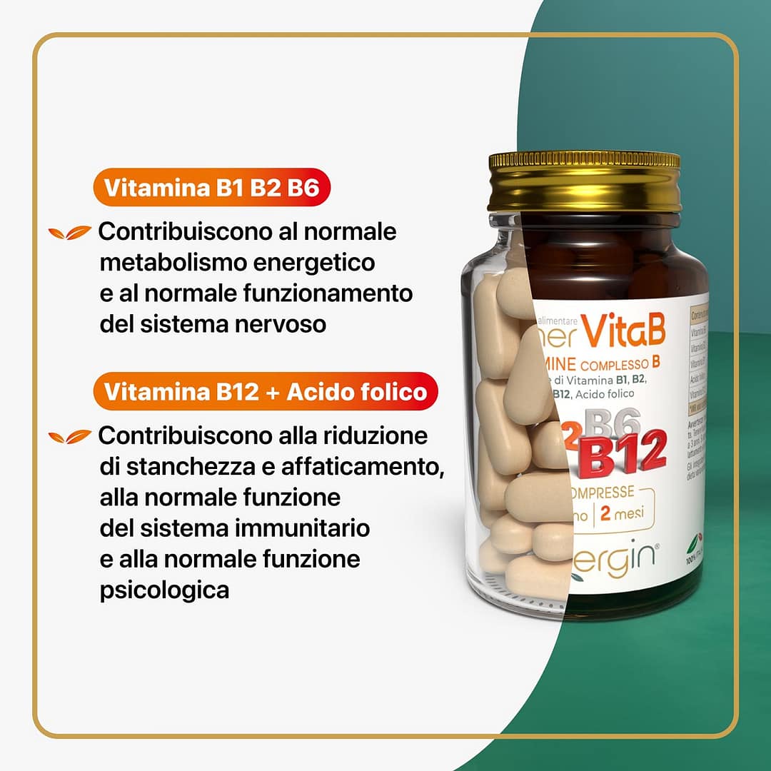 A base di Vitamina B1, B2, B6, B12 e Acido Folico. Contribuisce al normale metabolismo energetico, riduce stanchezza e affaticamento e supporta la funzione nervosa.