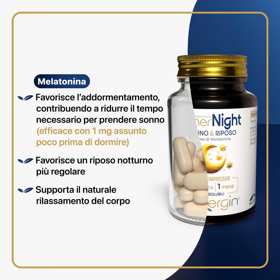 A base di Melatonina. Contribuisce a ridurre il tempo richiesto per prendere sonno, favorisce un riposo notturno regolare e supporta il rilassamento naturale.