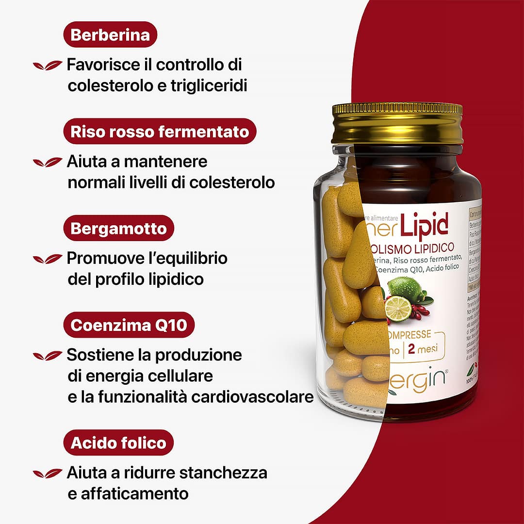 Integratore alimentare a base di Berberina, Riso Rosso fermentato, Bergamotto, Coenzima Q10, Acido Folico.