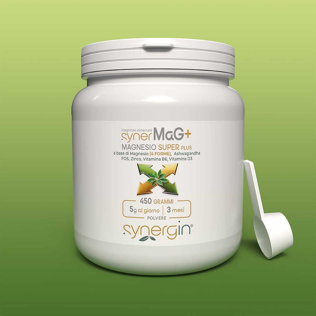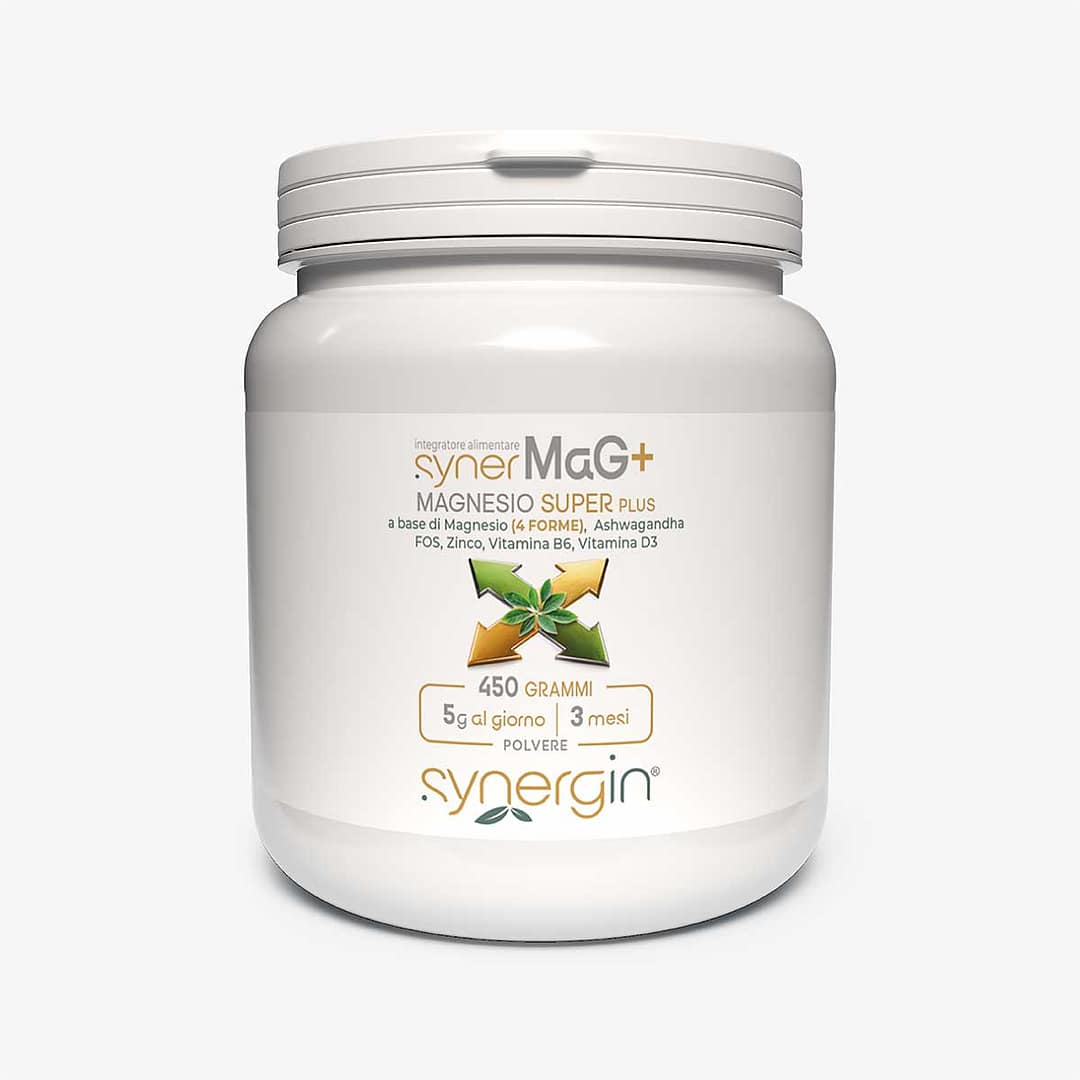 synerMaG Plus è l'integratore di magnesio completo in 4 FORME (idrossido, citrato, carbonato, bisglicinato) pensato per uomini e donne di ogni età che desiderano sostenere il proprio benessere psicofisico nella vita quotidiana.
