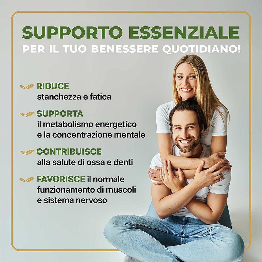 - Particolarmente indicato dopo i 40 anni, quando il fabbisogno di magnesio aumenta