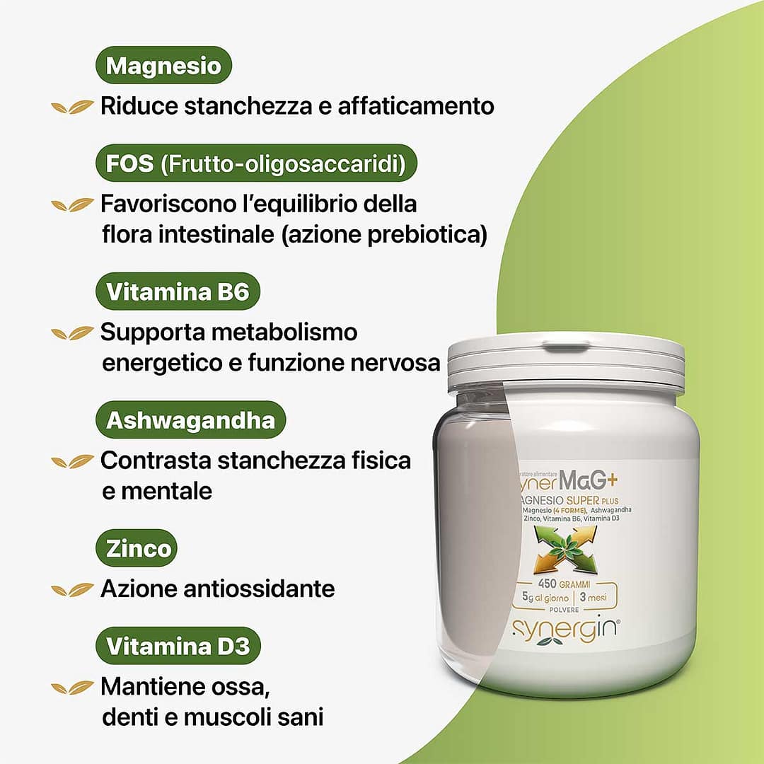 Con synerMaG Plus non assumi solo Magnesio, ma una formula completa e bilanciata:
