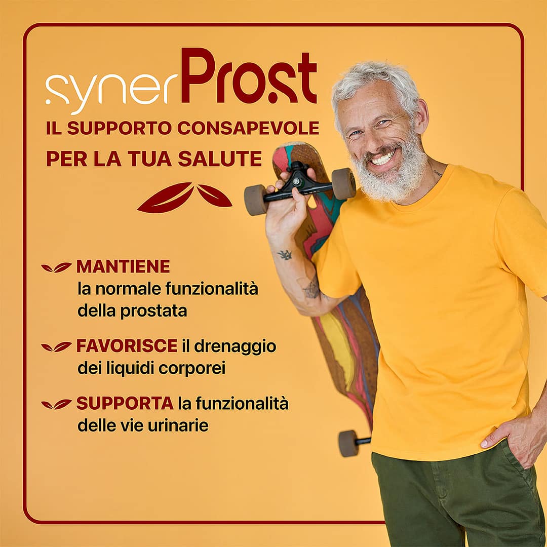 synerProst è l'integratore specifico per la salute prostatica maschile, ideale per chi avverte: